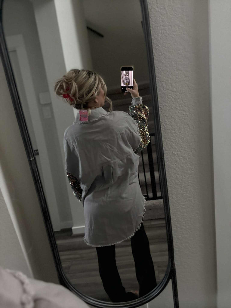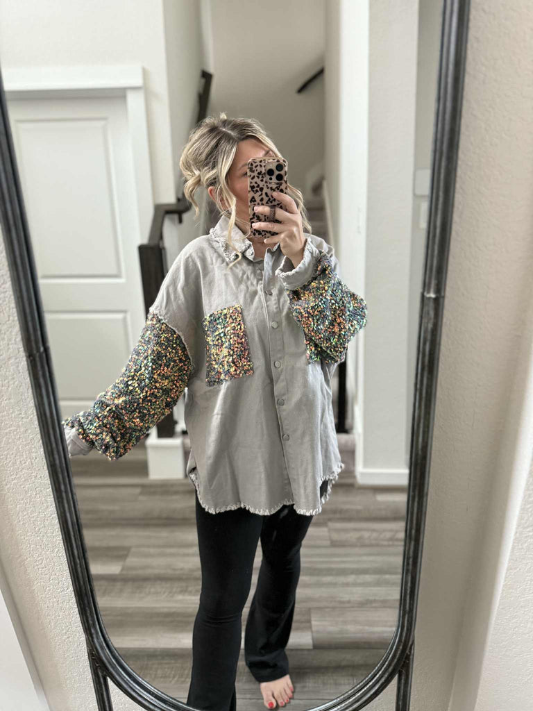 Blushin Sequin Shacket Grey